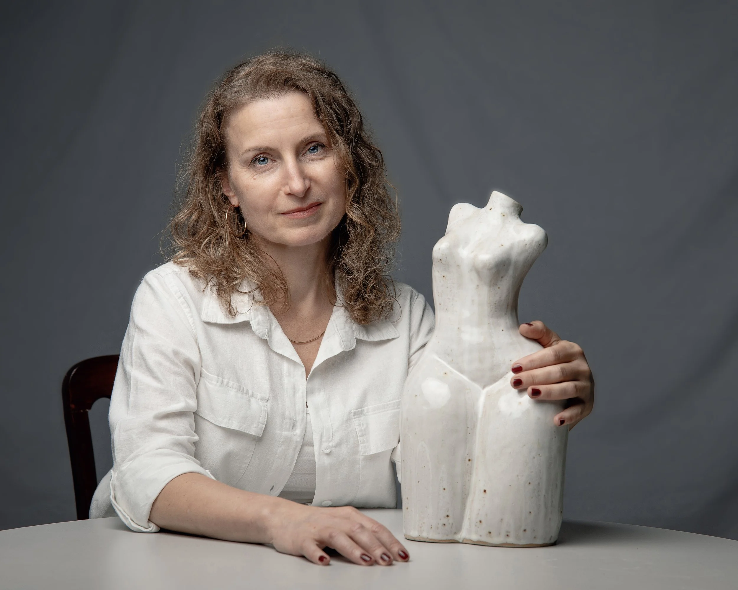 Lucia Officer, ceramic artist, posing for her Website profile picture